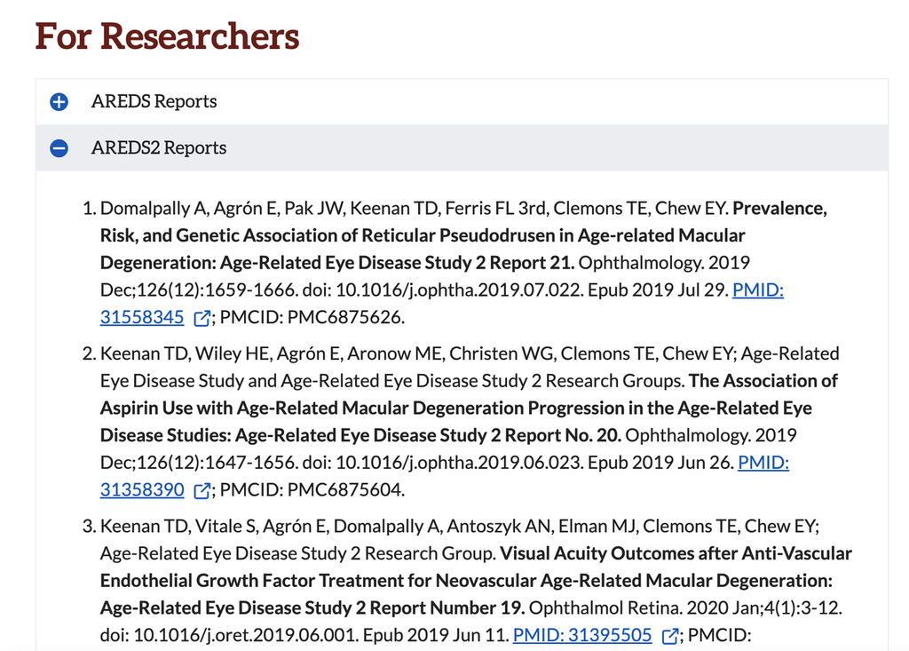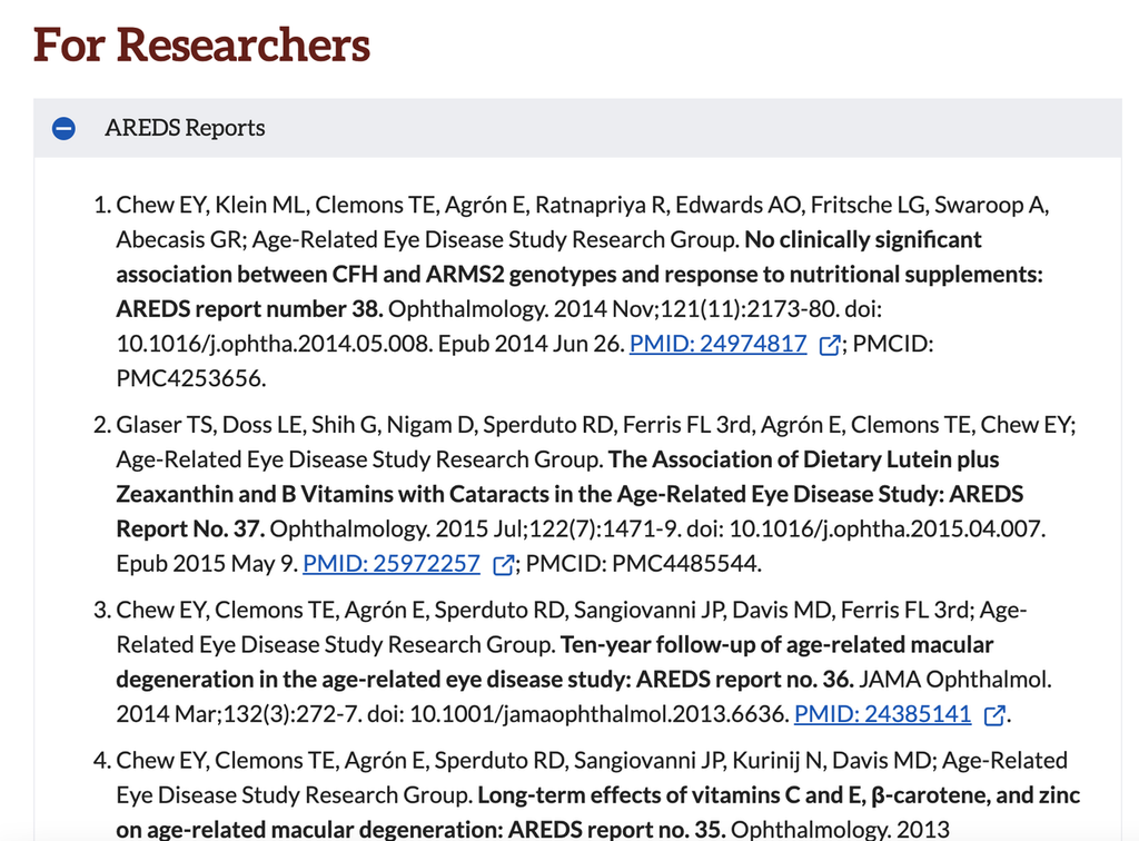 (For details of the AREDS2 research results, please refer to the official website of the NEI Institute of the US National Institutes of Health: https://www.nei.nih.gov/research/clinical-trials/age-related-eye-disease-studies-aredsareds2)